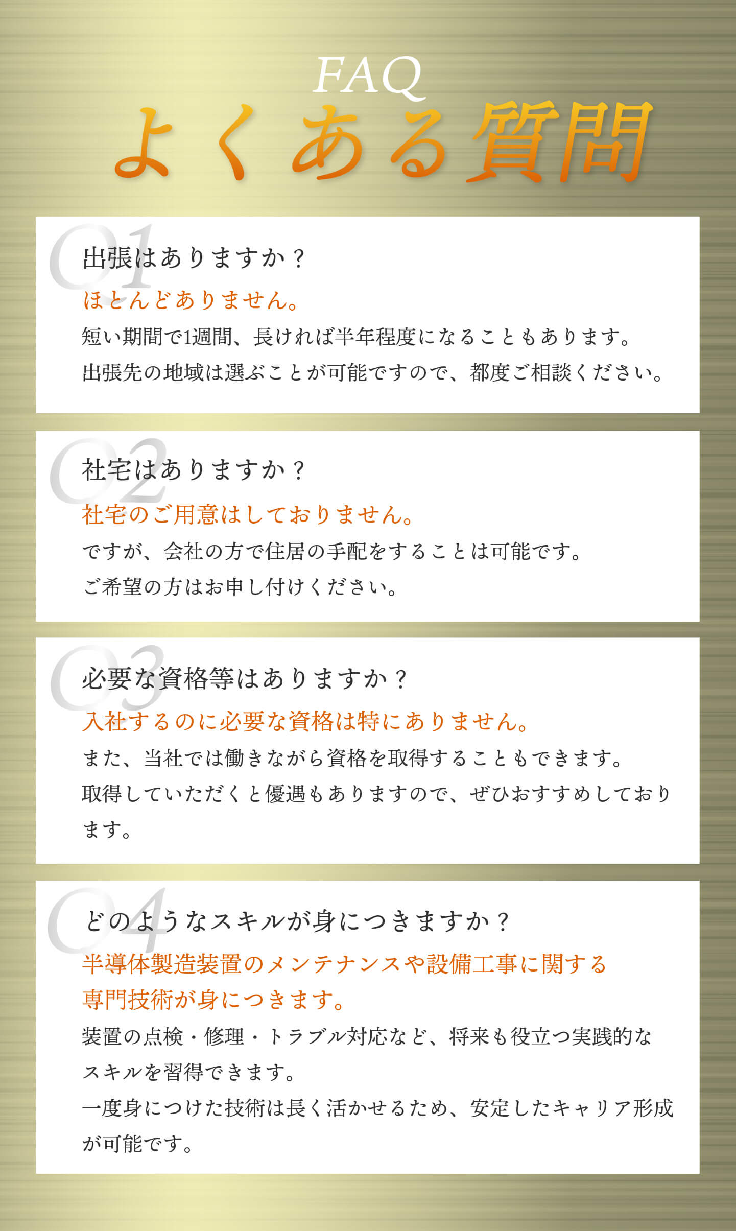 | 事業内容 | 半導体製造装置の保守管理、配管工事業、電気設備工事業、運搬業 |